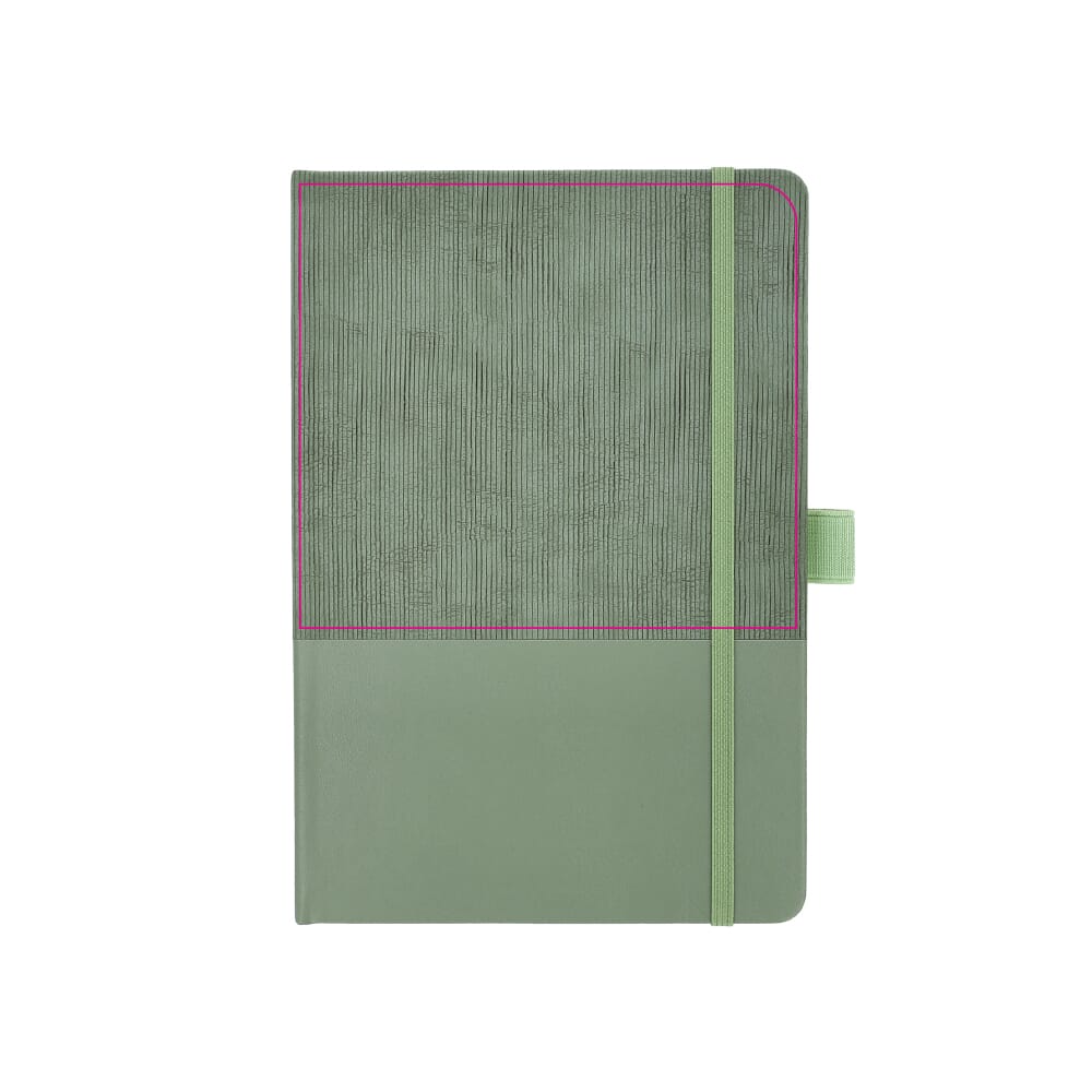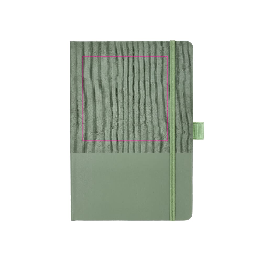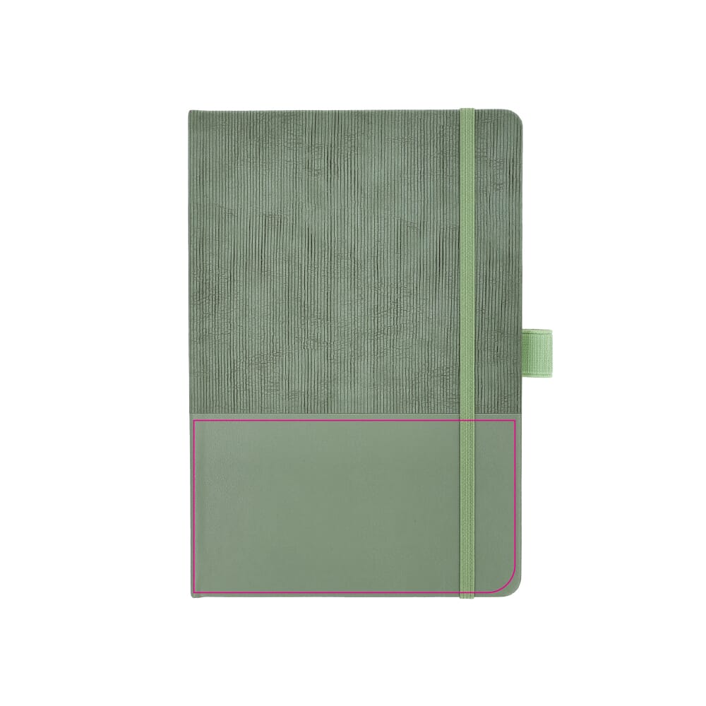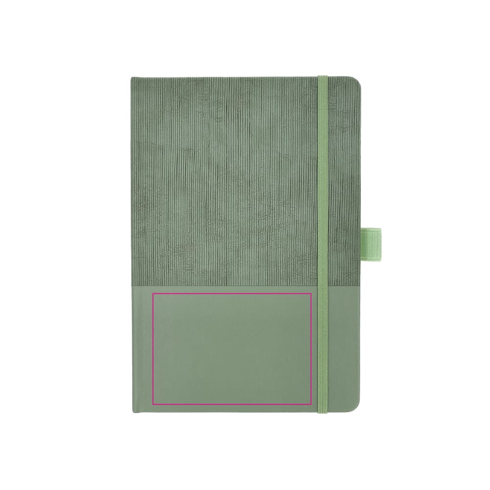 A5-notitieboek van thermo PU-leer met een moderne, premium uitstraling. Voorzien van een elastische sluiting, lintmarker en pennenlus. Het bevat 80 gelinieerde crèmekleurige pagina’s van FSC-gecertificeerd papier.